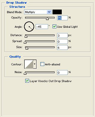 Drop Shadow: Blend Mode > Multiply, Angle >