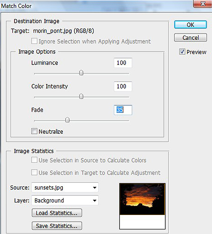 are going to do here is match the color of the sunset photo to the